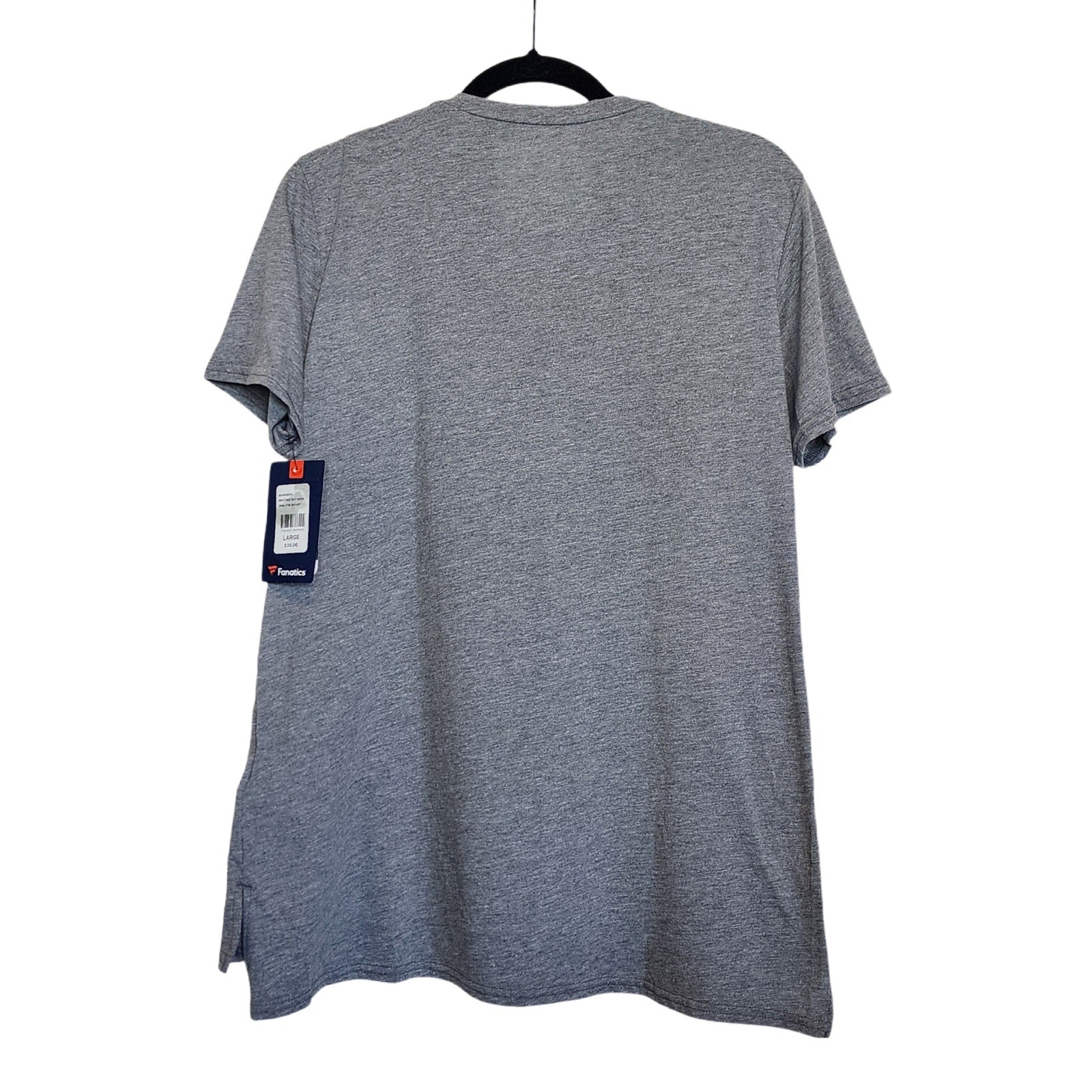 Keywords: Golden State Warriors shirt, women’s Warriors T-shirt, heather grey Warriors tee, drop tail back shirt, NBA playoff merch, Warriors size large, Warriors fan gear, women’s NBA apparel, Golden State playoffs, Warriors casual wear, ladies Warriors top